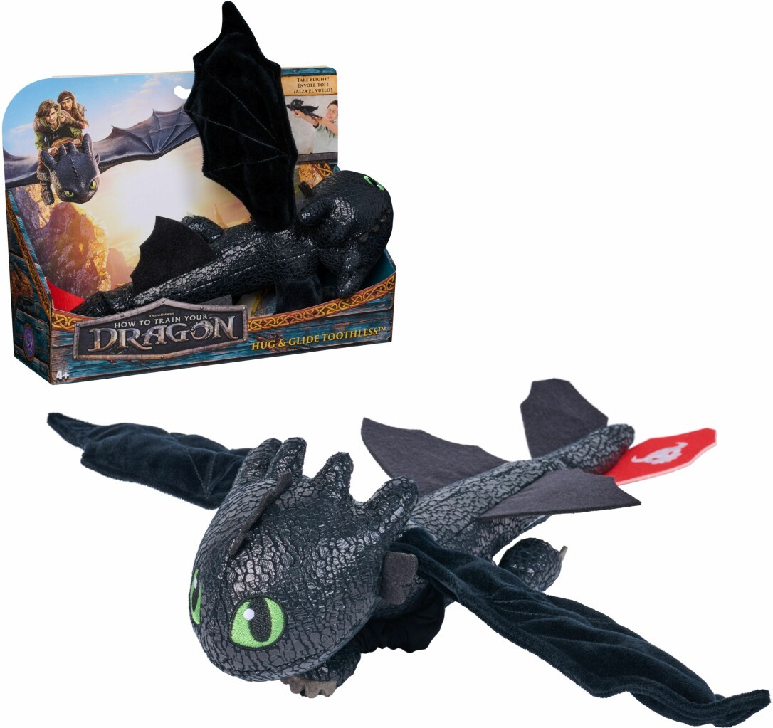 Neue Drachenabenteuer auf der großen Leinwand - im DreamWorks Films ''Drachenzähmen leicht gemacht''. Star des Films ist der niedliche Drache Ohnezahn. Die Plüschfigur kann sich durch die in den Flügeln eingesetzte Klackarmband-Technologie am Arm festhalten und einen mit seinen Flügeln umarmen. Der flexible Schwanz von Ohnezahn ist mit einer Slapband-Technologie ausgestattet. Der Drache kann wie eine Steinschleuder katapulitiert werden und in der Luft gleiten. Der Plüschdrache ist mit liebevollen Details originalgetreu wie im Kinofilm gestaltet. Kopf und Rücken schimmern in tollen, schwarzen Drachenschuppen. Mit der Spielzeuglinie von Spin Master zum Film kann die Drachen-Action zuhause starten. Erhältlich sind zum Beispiel interaktive Figuren, Action- und Sammlerfiguren oder auch Plüschdrachen. Für alle Kinder und Drachenzähmer ab 4 Jahren