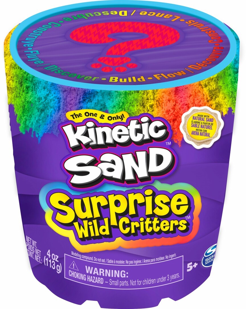 Ideal für Kinder, die Überraschungen lieben, gerne kreativ sind und sich an kleinen Tierchen erfreuen. In dem Kinetic Sand Surprise Behälter stecken 113 g original Kinetic Sand einer beliebigen Farbe mit magisch fließender Struktur, hergestellt in Schweden. Ebenso wartet eines von vier verschiedenen Tieren darauf entdeckt zu werden. Jedes Tier dient gleichzeitig als Werkzeug zum Sandspielen. Beim Fuchs werden die Ohren zur Schaufel, beim Axolotl die Haare zur Harke, mit dem Haimaul kann man formen und der Igel rollt Muster und formt Kugeln. Die Deckel der Behälter werden zum Spielset und dienen ebenfalls zum Formen. Zusätzliche Accessoires bieten noch mehr Spielmöglichkeiten. So viel kreativer Sandspielspaß steckt in jedem Behälter. Ob als kleine Belohnung, Mitbringsel oder Geschenk im selbstgemachten Adventskalender, Kinetic Sand begeistert Kinder ab 3 Jahren, die gerne mit Händen kreativ sind. Da Kinetic Sand nicht austrocknet, ist er jederzeit einsatzbereit. Kinetic Sand ist separat in vielen verschiedenen Farben erhältlich, die die Fantasie weiter beflügeln.