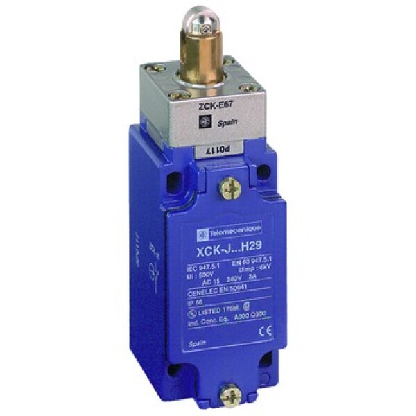 Schneider Electric XCKJ167H29. Übertragungstechnik: Verkabelt, Gehäusematerial: Zamak, Internationale Schutzart (IP-Code): IP66. Breite: 40 mm, Tiefe: 44 mm, Höhe: 77 mm