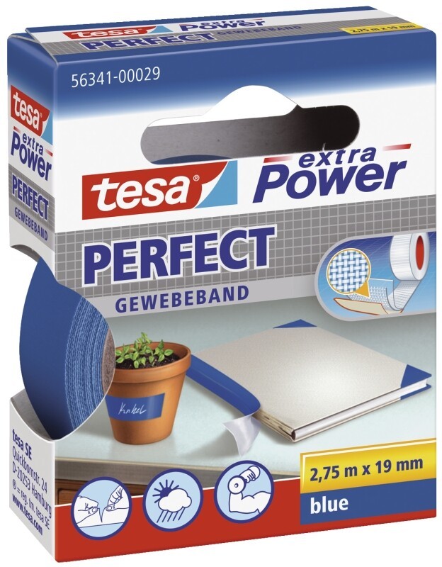 Tesa Gewebekleb. 2,75m x 19mm extra Power blau Perfekt 56341 Gewebeklebeband