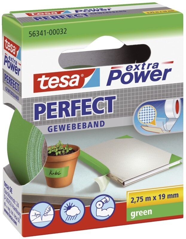 Tesa Gewebekleb. 2,75m x 19mm extra Power grün Perfekt 56341 Gewebeklebeband