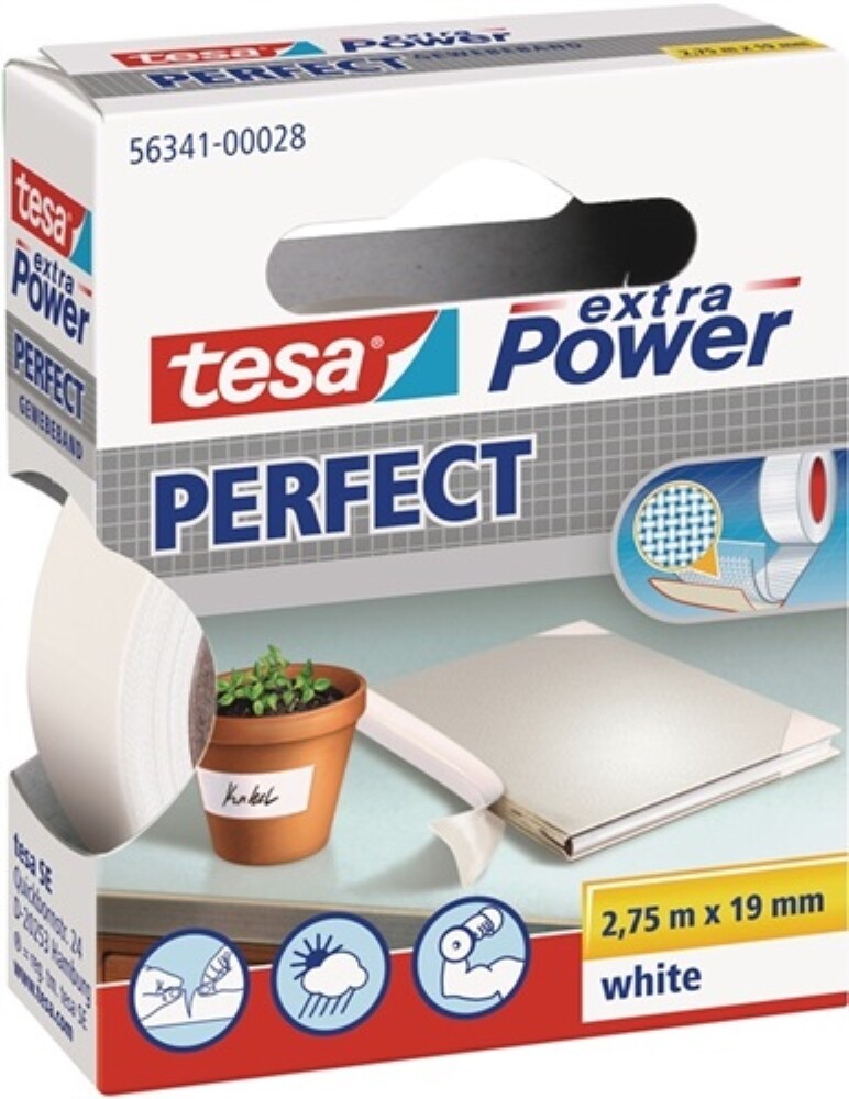 Tesa Gewebekleb. 2,75m x 19mm extra Power weiß Perfekt 56341 Gewebeklebeband