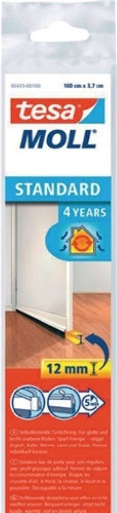 Die tesamoll Standard Schaumstoffdichtung ist eine clevere Lösung zum Abdichten von Spalten zwischen glatten Böden und Türen. Sie besteht aus einer Kunststoffschiene und einem Bürstenaufsatz mit Nylonborsten, die für optimalen Schutz sorgen.