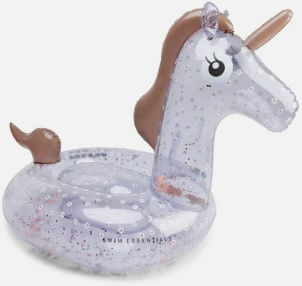 Schwimmtier Einhorn zum draufsetzen mit süßem Gänseblümchen Design und Glitter. Maße aufgeblasen ca. 150 cm. Empfohlen für Kinder ab 6 Jahren, die gute Schwimmer sind.