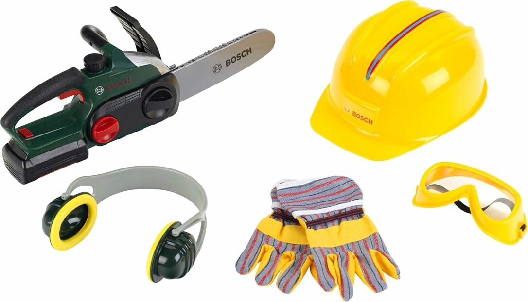 Mit diesem Spielzeug-Kettensäge-Set fühlen sich kleine Handwerkerinnern und Handwerker wie echte Profis