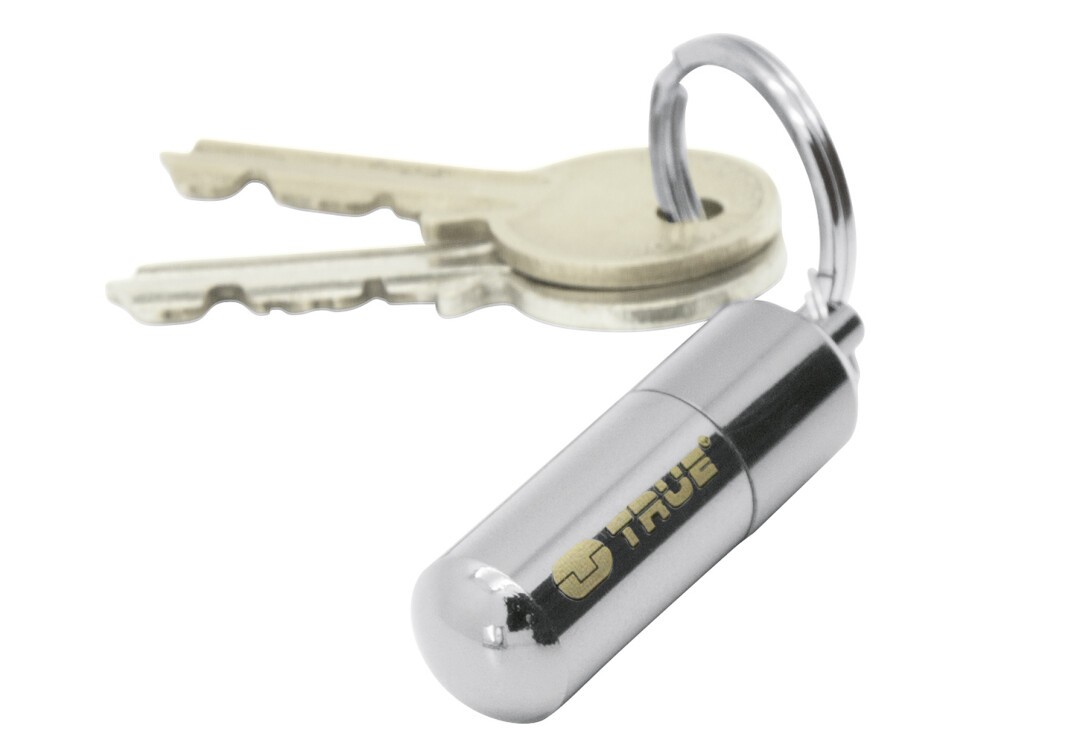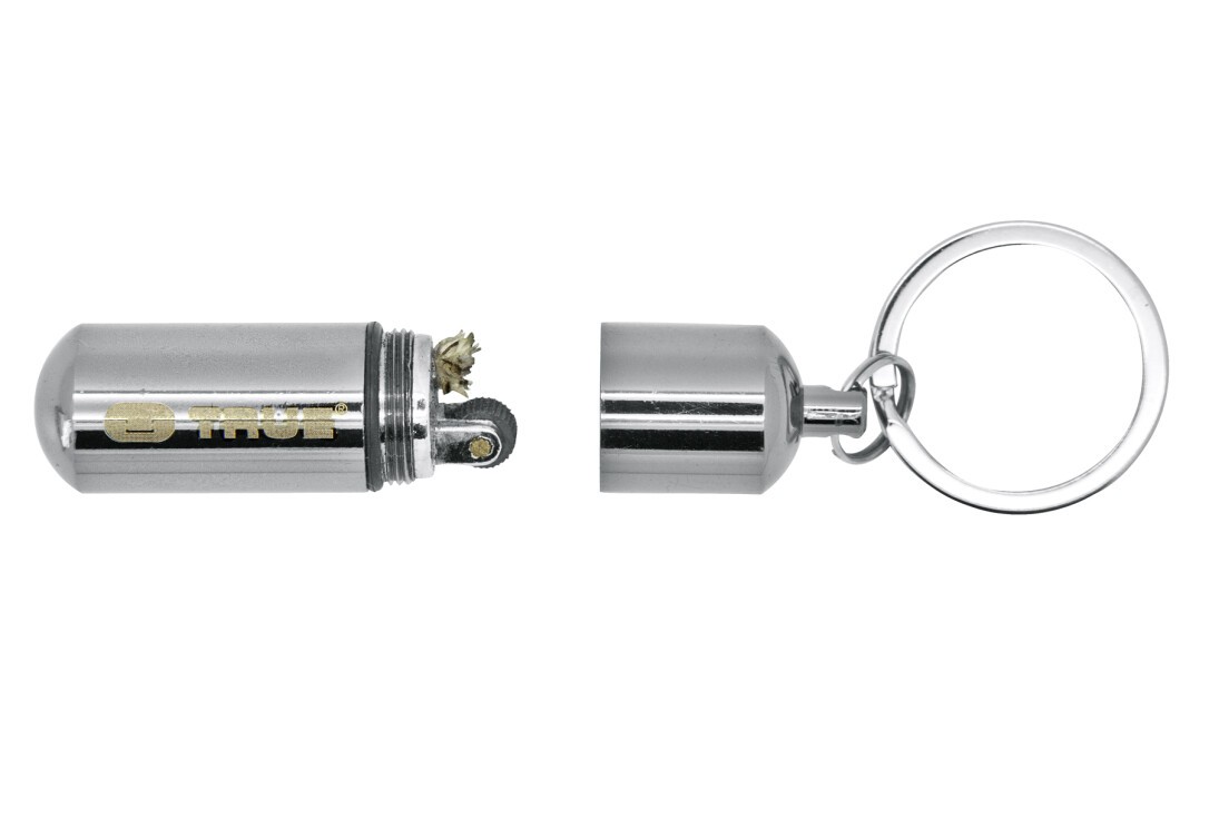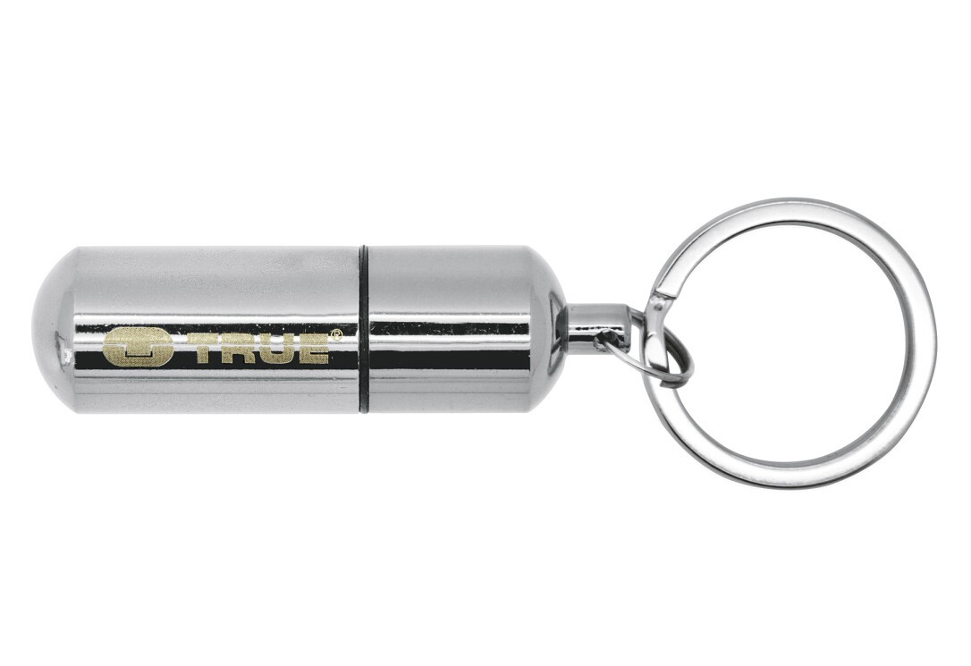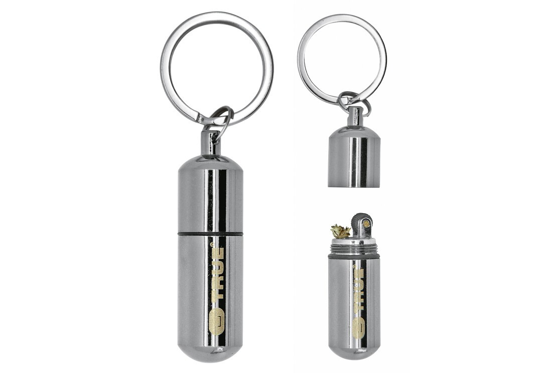 Der FIRESTASH von TRUE ist ein unglaublich kleiner, wasserdichter Schlüsselanhänger, der ein voll funktionsfähiges Benzinfeuerzeug beherbergt. Der verchromte Körper aus Aluminium-Druckguss ist nur 4,5 cm groß und somit leicht an Schlüsselbund, Ausrüstung oder Kleidung zu befestigen. Nachfüllbar mit handelsüblichem Feuerzeugbenzin.