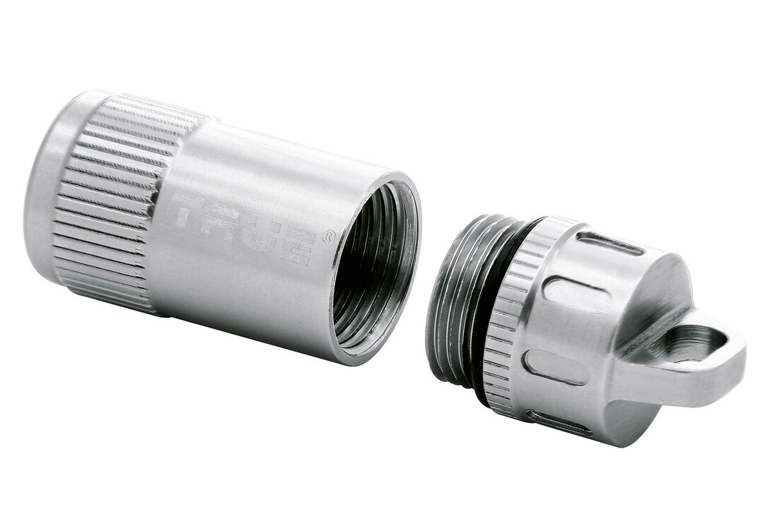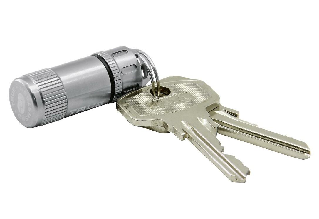 Der CASHSTASH+ von TRUE ist eine hochentwickelte Notfall Bargeldkapsel für Ihren Schlüsselbund. Das Gehäuse aus eloxiertem Flugzeugaluminium sichert eine Banknote jeder Währung und kann über einen kleinen Karabiner einfach an den Schlüsselring geklippt werden. Er ist so klein wie ein Schlüssel und wasserdicht. Ein perfektes Geschenk, besonders wenn Sie Bargeld hineinstecken! Gehäuse 4,3 cm lang, Druchmesser 1,6cm.