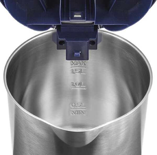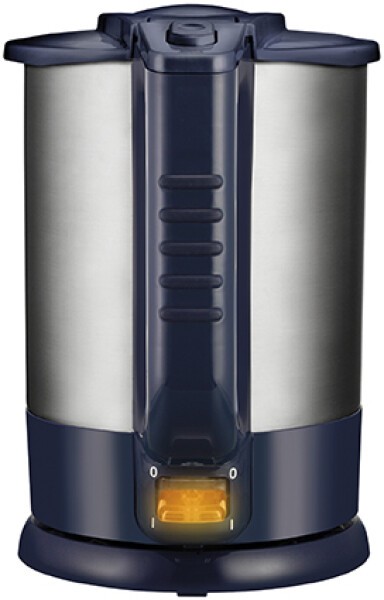 Mit ca. 1,5 Liter Volumen ist der kabellose, abnehmbare Edelstahlbehälter genau passend für jede Gelegenheit. Der Deckel öffnet sich per Knopfdruck. Der Griff hat eine Antirutschgummierung. Besonders praktisch sind die Wasserstandsanzeige, die 360° drehbare Kontaktverbindung und der separate Sockel mit Anschlusskabel und Kabelaufbewahrung. Für Sicherheit sorgen der Trockengehschutz, der Kochstopp mit Abschaltautomatik, das abgedeckte Heizelement und die Sicherheitsverriegelung am Deckel. Durch die große Behälteröffnung lässt sich der Blitzkocher leicht reinigen. Mit Kalkfilter im Deckel.