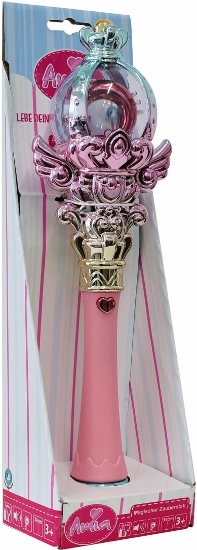 Das Amia Magische Zepter mit Licht und Sound. 5 verschiedene Melodien und Hologramm Effekt. Inklusive 3xAAA Batterien. Maße ca. 9x6x33 cm. Für Kinder ab 3 Jahren.