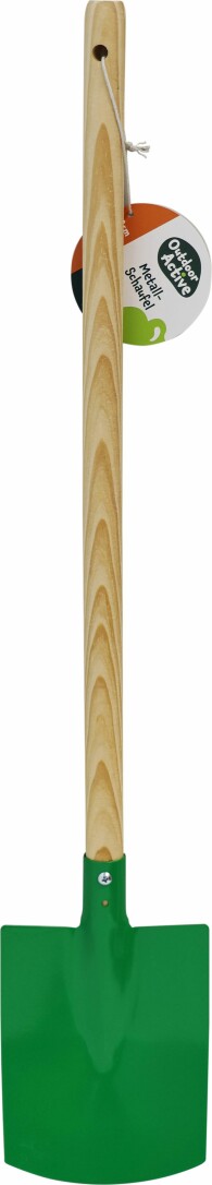 Outdoor active Schaufel aus Metall mit Holzstiel. Länge 68cm. Durchmesser Stiel ca. 23cm. Maße der Schaufel ca. 11x20cm. Für Kinder ab 6 Jahren.