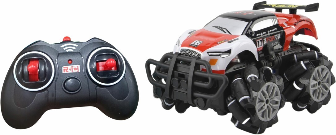 Der Racer R/C Mini Drifter macht einfach Spaß. Ob Vorwärts, Rückwärts, Links, Rechts, kann er auch zur Seite wegdriften. Mit LED Lichter. Control Distanz ca. 25 Meter. Geschwindigkeit ca. 8-10 km/h Mit 2.4GHz. Maße ca. 14,5x10,5x8,5 cm. Inklusive AA 1,5V Batterien. Für Kinder ab 5 Jahren.