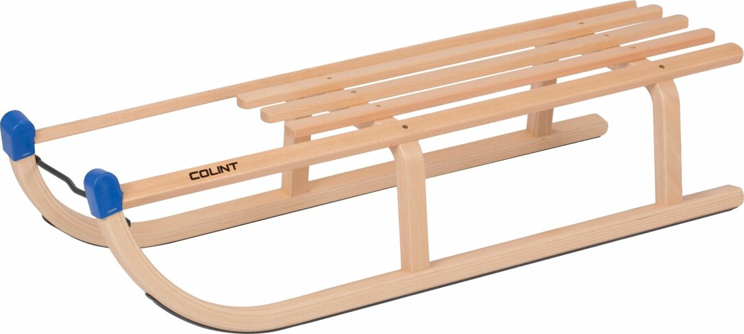 Aus Buchenholz, Bockstützen und Kufen aus gebogenem Sperrholz, lackiert, pulverbeschichtete Metallkufen mit abgerundetem Profil und Schutzkappen aus Kunststoff. Patentiertes Modell. Ab 3 Jahren.