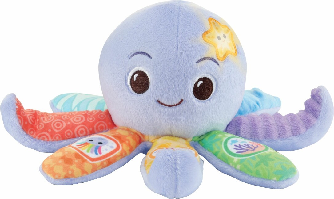 Niedlicher Meeresbewohner zum Drücken! Interaktiver Oktopus aus Plüsch mit farbenfrohen und weichen Tasten, unterschiedlichen Ober- flächen und Materialien zum Entdecken und Spielen. 3 Spielmodi: Naturmodustaste (beruhigende Wassergeräusche), Musiktaste (löst Melodien, Geräusche und Lieder aus) und Sprachtaste (löst Sätze aus). Der Seestern am Kopf leuchtet in verschiedenen Farben. Die 8 bunten Tentakel bestehen aus unterschiedlichen weichen Materialien, die zum Erkunden einladen. Lerninhalte: Musik & Geräusche, taktile Wahrnehmung, Förderung der auditiven Wahrnehmung und Farben. 3 gesungene Lieder und 15 Melodien. Kindersicheres Batteriefach, Abschaltautomatik und Lautstärkeregler. Demobatterien sind enthalten.