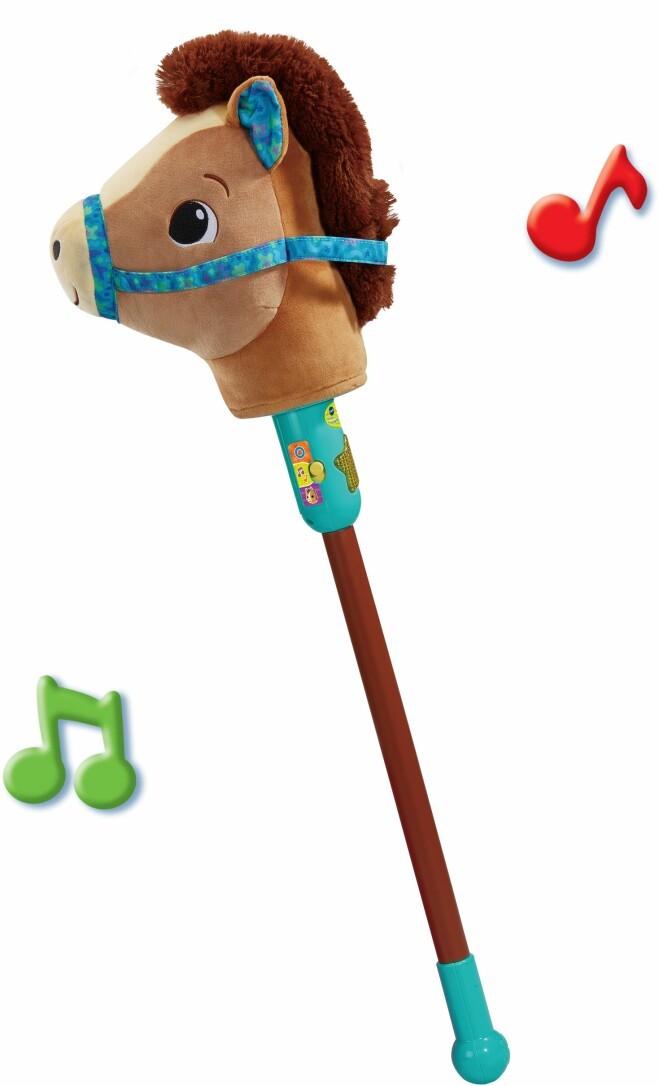 Hopp, hopp, hopp - lauf mit mir Galopp! Kuscheliges Steckenpferd mit Plüschkopf für Reiterhof-Abenteuer im Kinderzimmer mit einer Vielzahl an Sätzen, Melodien und Geräuschen. Weiches, kuscheliges Plüschkopf-Design für angenehmen Spielkomfort. Modusschalter für zwei verschiedene Spielmodi: Musik und Lernspaß. Im Lernmodus werden wissenswerte Fakten über Pferde vermittelt und realistische Pferdegeräusche abgespielt. Im Musikmodus kann eine Melodie oder ein Lied ausgewählt werden, um im Takt zu traben. Ein integrierter Bewegungssensor passt die Melodien an das Tempo der Schritte des Kindes an. Leuchtende Sterntaste löst passende Sätze und Pferdegeräusche aus. Stoffhalfter zum realistischen Anlegen und Fördern der Feinmotorik. Lerninhalte: Rollenspiel, Musik, Motorik. 4 gesungene Lieder und 4 Melodien. Über 70 lustige und realistische Sätze, Melodien und Geräusche sorgen für abwechslungsreichen Spielspaß. Kindersicheres Batteriefach und Abschaltautomatik.