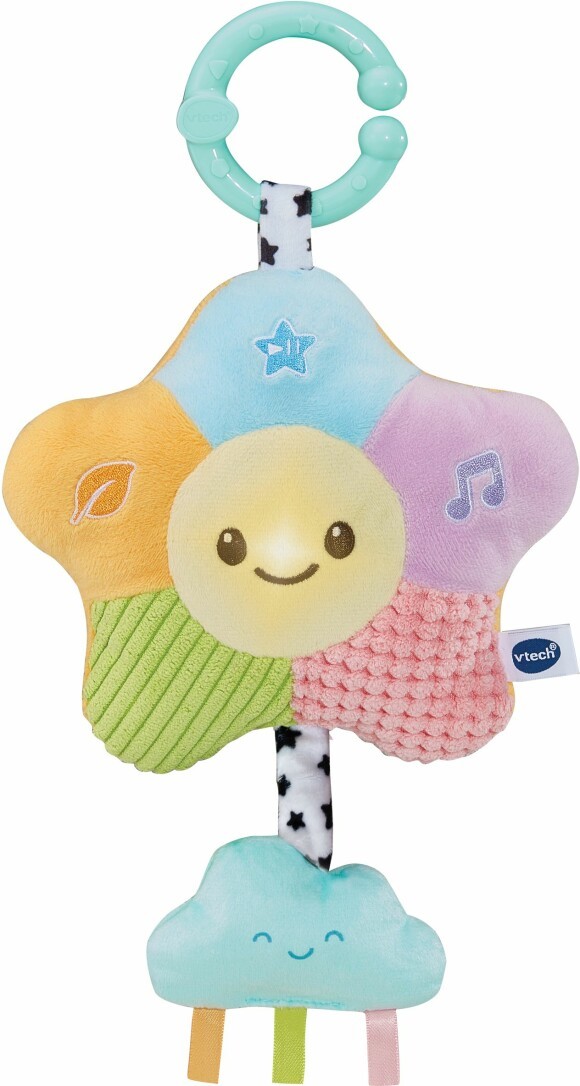 Kuschelige Sternstunden mit dem Schlaf-schön-Sternchen! Liebevoll gestaltetes Nachtlicht aus weichem Plüsch mit beruhigenden Liedern, Melodien und Geräuschen. Beruhigende Lichteffekte, die auf die Lieder, Melodien und Geräusche abgestimmt sind. 3 bunte Tasten: Durch Drücken der Blatttaste werden Natur- und Umgebungsgeräusche (z. B. Wind, Wellen, Regen, Fön) abgespielt, das Drücken der Musiktaste löst beruhigende Melodien aus, durch Drücken der Sterntaste kann die Wiedergabe pausiert werden. Die Wiedergabe der auditiven Inhalte dauert jeweils etwa 15 Minuten. Eine Wolke aus Knisterstoff mit drei bunten Bändern sowie verschiedene Texturen und Farben laden zum Tasten und Entdecken ein. Lerninhalte: Sensorik, auditive Wahrnehmung, Natur. Abnehmbarer Befestigungsring für die flexible Nutzung - auch unterwegs. 3 gesungene Lieder und 20 Melodien. Kindersicheres Batteriefach, Abschaltautomatik und Lautstärkeregler.