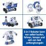 Einen eigenen 5-in-1-Roboter zusammenbauen und viele spannende Missionen bestehen! Mit 18 verschiedenen Bauteilen kreativ werden und einen eigenen Roboter kreieren. Das Aufbauen ist einfach und es wird kein Werkzeug benötigt. Der Roboter ist motorisiert: Je nachdem welche Bauteile benutzt werden, bewegt sich der V-Bot auf unterschiedliche Weise und hat angepasste Funktionen, um die Missionen zu erfüllen. Es gibt 5 Missionen, die mit den enthaltenen Bauteilen erfüllt werden können: Asteroidenbedrohung, Gefrorener See, Minenwagen, Lavaschlucht und Felswände. Für jede Mission werden unterschiedliche Funktionen und Bauteile benötigt wie z.B. Greifarme, Seil oder Stampffüße. Handbuch mit einfachen Anleitungen zum Zusammenbauen und Erklärungen für die Missionen. Im Freispielmodus können verschiedene Reaktionen des V-Bots ausprobiert werden wie z.B. der Geräuschsensor, der auf Klatschen reagiert oder 2 Infrarotsensoren, die Hindernisse erkennen. Auf den Schultern befinden sich 2 Pfeiltasten, mit denen der V-Bot vorwärts und rückwärts bewegt werden kann oder sogar tanzen kann! 360° drehbarer Kopf, leuchtende Augen, Soundeffekte und eine Stimme, die den Roboter bei den Missionen führt, für noch mehr Spielspaß. Demobatterien sind enthalten.