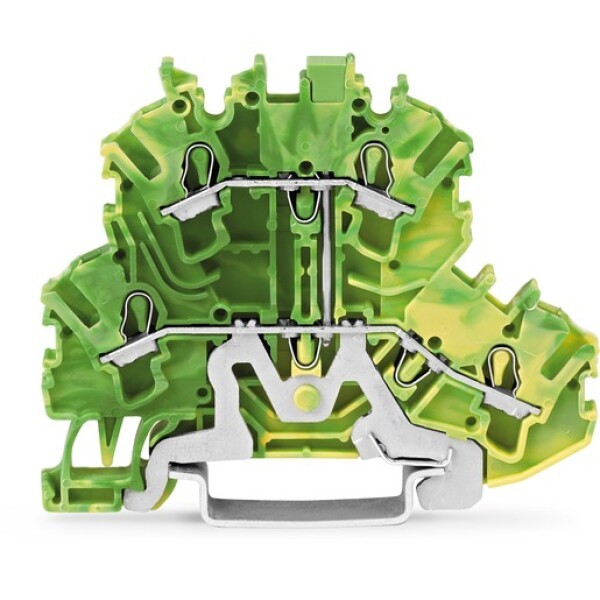 Double-deck terminal block; 4-conductor ground terminal block; PE; without marker carrier; green-yellow housing; internal commoning; suitable for Ex e II applications