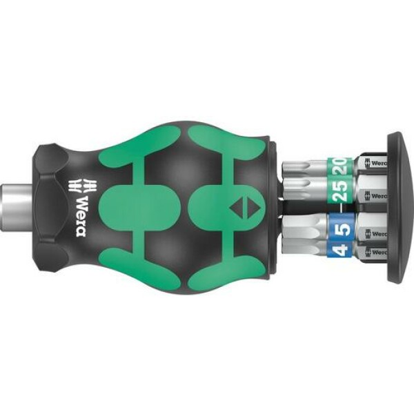 Kurze kompakte Stubby-Form für Arbeiten in engen Bauräumen mit 6 Bits im integrierten Magazin. Ergonomischer 2-Komponenten Kraftform Griff für präzises Arbeiten. 1/4 Zoll Bitaufnahme mit starkem Dauermagnet. Unverlierbares und schwenkbares Bitmagazin zur einfachen Entnahme und sicheren Lagerung der Bits. Mit Werkzeugfinder Take it easy: Farbkennzeichnung nach Profilen und Größenstempelung.