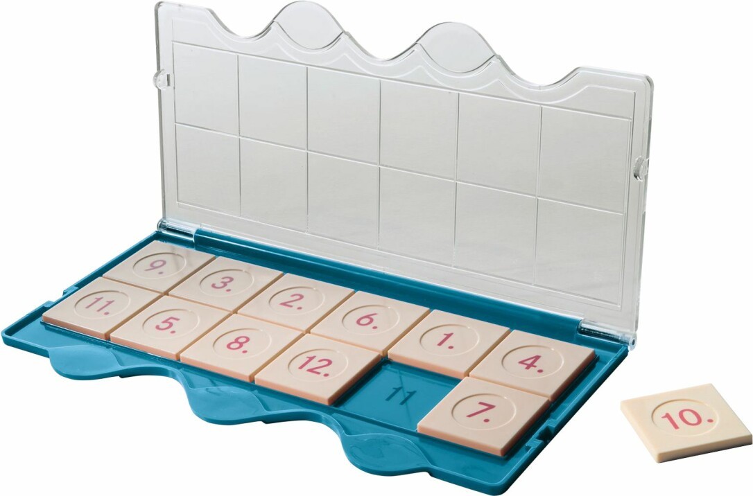 Das universelle miniLÜK-Kontrollgerät in blau (die Farbe kann durch Bildschirmdarstellung leicht abweichen) mit Klarsichtdeckel und 12 Aufgabenplättchen zur Bearbeitung aller miniLÜK-Übungshefte vom Kindergarten bis zur 4. Klasse. Originalgröße geschlossen: 26 x 13 cm