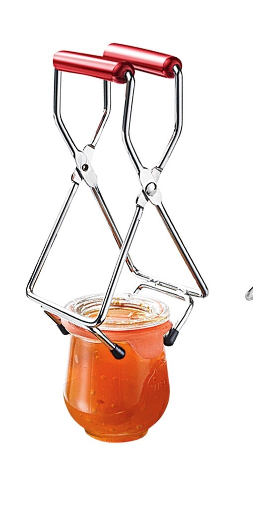 Mit der Westmark Glashebezange lassen sich heiße Einmachgläser leicht aus siedendem Wasser heben. Die Form der Zange ist optimal an Einmachgläser angepasst. Der rote gummierte Griff schützt die Finger vor Verbrennungen. Außerdem können die Hände nicht vom Griff abrutschen. Die Zange der Marke Westmark GmbH ist aus hochwertigem Metall gearbeitet und äußerst langlebig. Dank der 4 Gummifüßchen bietet der Heber guten Halt an Gläsern bis zu einem Durchmesser von 18 cm. Der Konservenheber kann von Hand gereinigt werden und lässt sich einfach in jeder Küchenschublade verstauen. Mit diesem Produkt ist das Einkochen von Gemüse oder Obst kein Problem mehr.