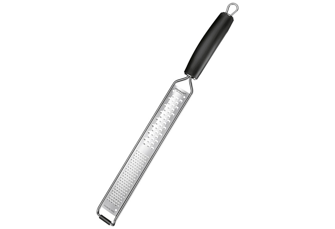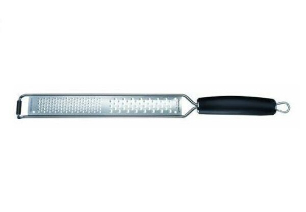 Die Kombireibe ist aus hochwertigem Edelstahl, durch professionelle Ätztechnik hat sie eine außergewöhnlich scharfe und langlebige Klinge. Mit Aufhängeöse, rutschfestem Gummi und Klingenschutz.