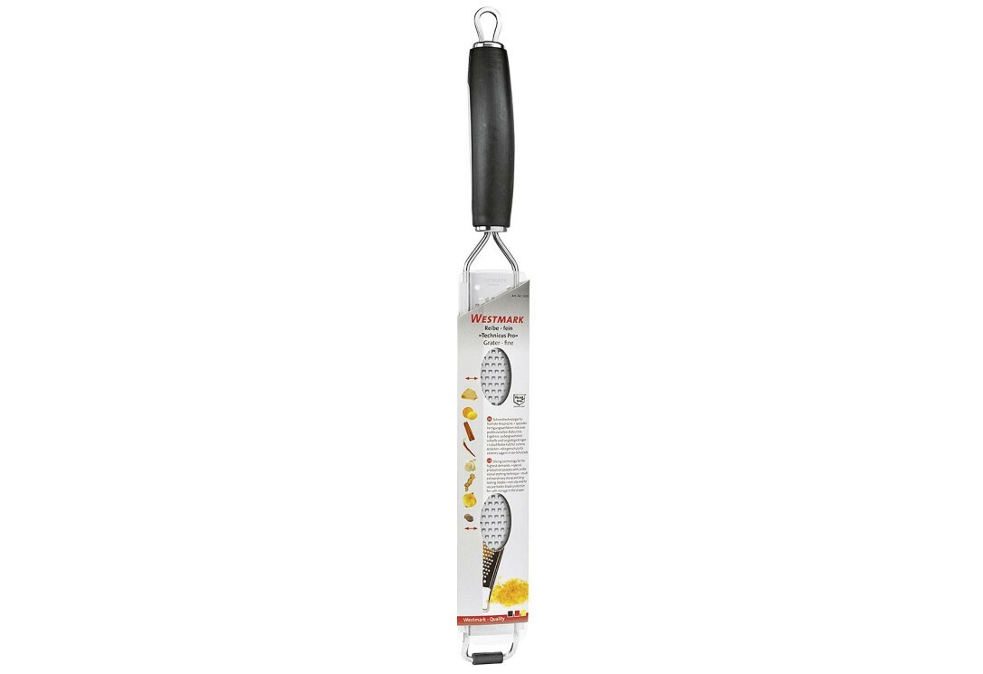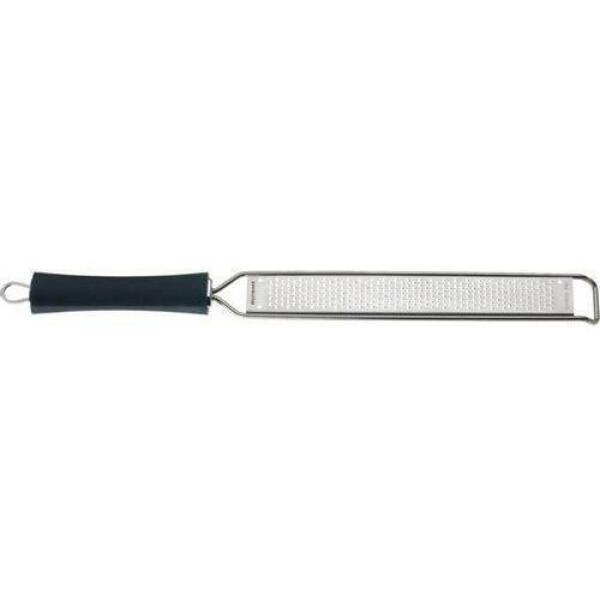 Die Reibe ist aus hochwertigem Edelstahl gefertigt und besitzt durch professionelle Ätztechnik eine außergewöhnlich scharfe und langlebige Klinge, mit der Sie fein reiben können. Mit Aufhängeöse, Kligenschutz und rutschfestem Gummi.