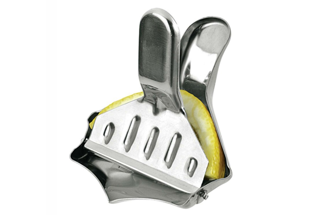 Mit dieser Zitronenschnitzelpresse können Sie einzelne Zitrusscheiben wunderbar auspressen, sodass Sie Ihren Tee verfeinern und gegarten Fisch oder Schnitzel ganz ohne Zitruskerne würzen können. Dank des Ausgießers ist tropfgenaues Portionieren möglich. Die abgerundeten Griffenden ermöglichen eine leichte Handhabung. Diese Zitronenschnitzelpresse besteht aus rostfreiem Edelstahl und ist leicht in der Spülmaschine zu reinigen. Material: Edelstahl 18/10. Maße: 85 x 71 x 19 mm.