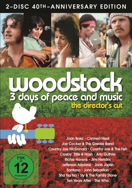 Die Wiederauferstehung eines der größten Momente des 20. Jahrhunderts. Das bekannteste Rockereignis aller Zeiten. 1969 versammelten sich eine halbe Million Menschen in der Nähe des kleinen Ortes Woodstock, um den bedeutendsten Musikern ihrer Generation zuzuhören. Drei Tage des Friedens, der Musik und der Liebe. Drei Stunden unvergessene Bilder und faszinierende Musik einer Zeit, die heute noch genauso lebendig ist, wie vor zwanzig Jahren. THE WHO \"We\'re Not Gonna Take It\", TEN YEARS AFTER \"I\'m Going Home\", JOE COCKER \"With A Little Help From My Friends\", CROSBY, STILLS, NASH AND YOUNG \"Wooden Ships\", JIMI HENDRIX \"Purple Haze\", SLY & THE FAMILY STONE \"I Want To Take You Higher\", SANTANA \"Soul Sacrifice\", RICHIE HAVENS \"Freedom\", SHA-NA-NA \"At The Hop\", JOAN BAEZ \"Joe Hill\".