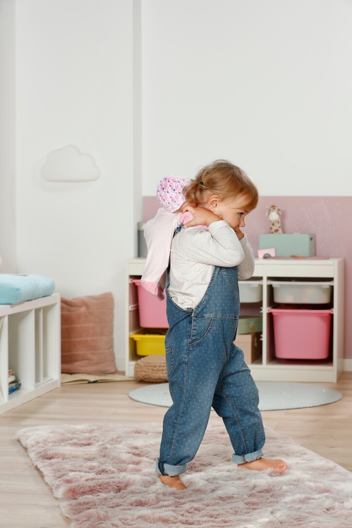 BABY born Anna Rose, weiche 36cm große Babypuppe mit Stoffkörper, mit rosa Strampler und Schlafaugen inkl. Fläschchen