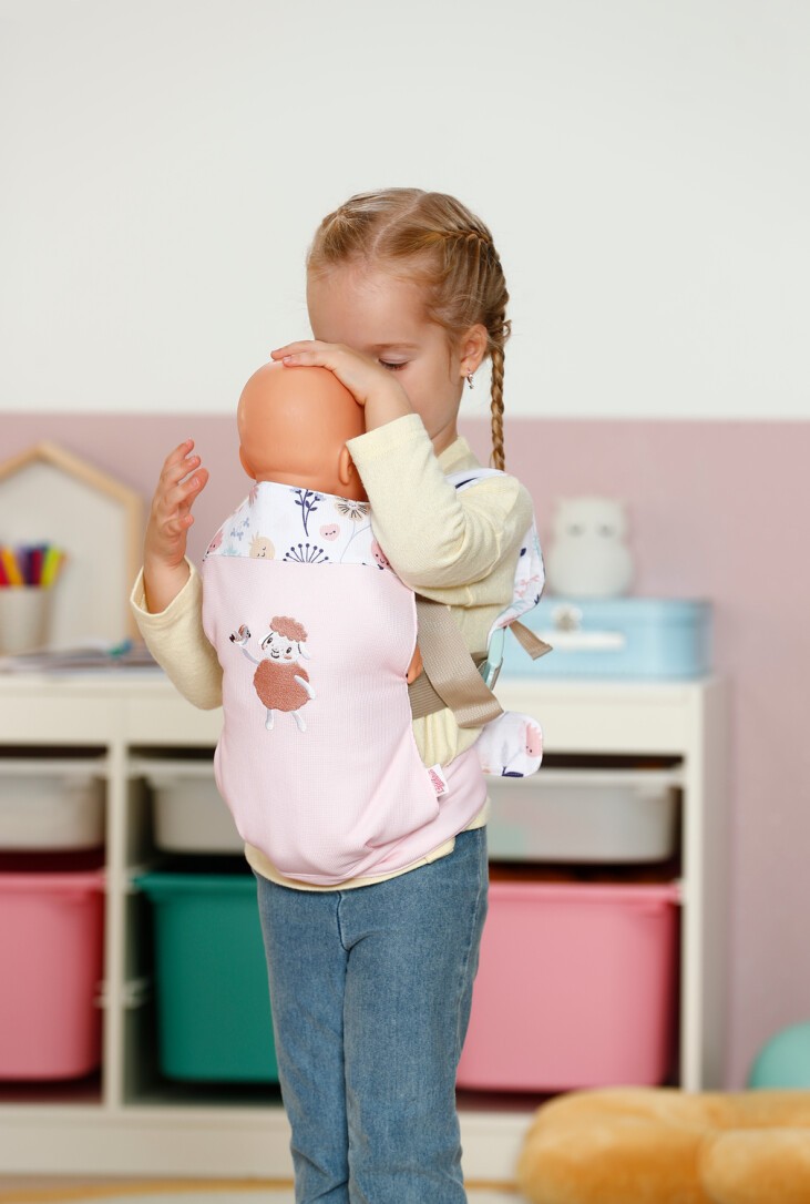 BABY born Babytrage, Puppentrage für Kinder mit 2 Blickrichtungen und verstellbarem Gurt in rosa und grau für 36 und 43 cm Puppen geeignet