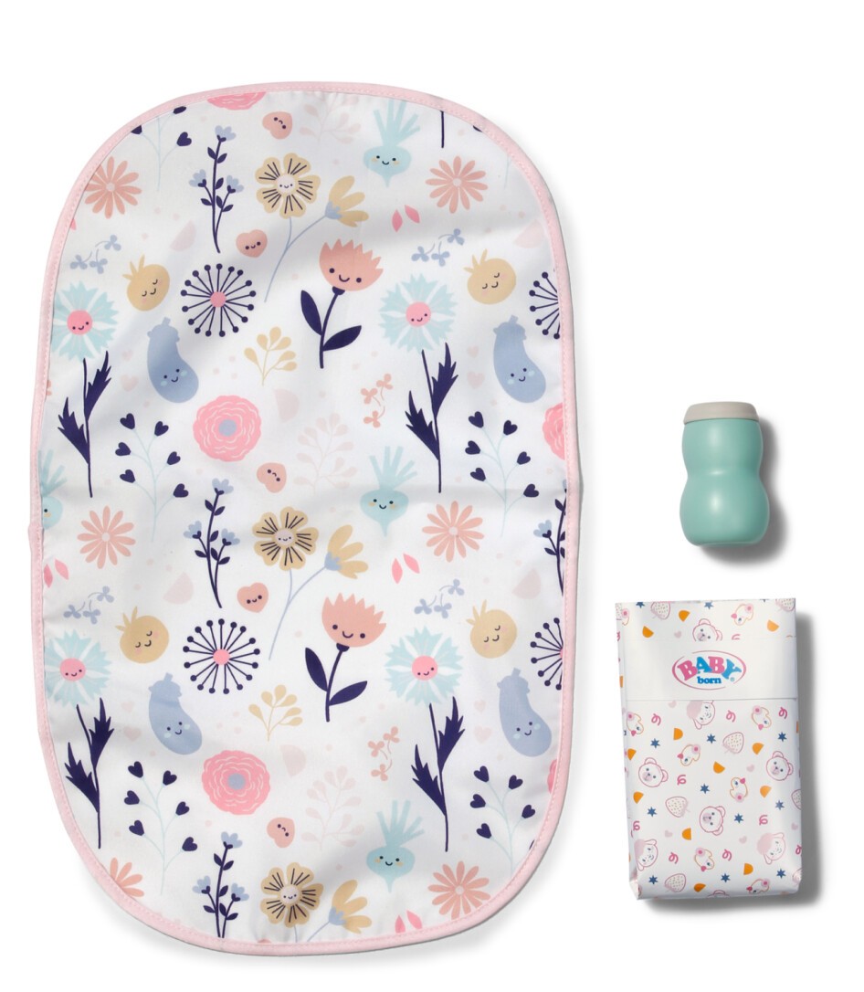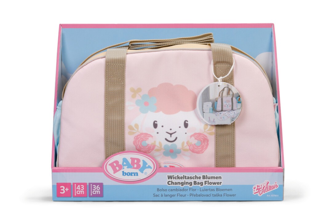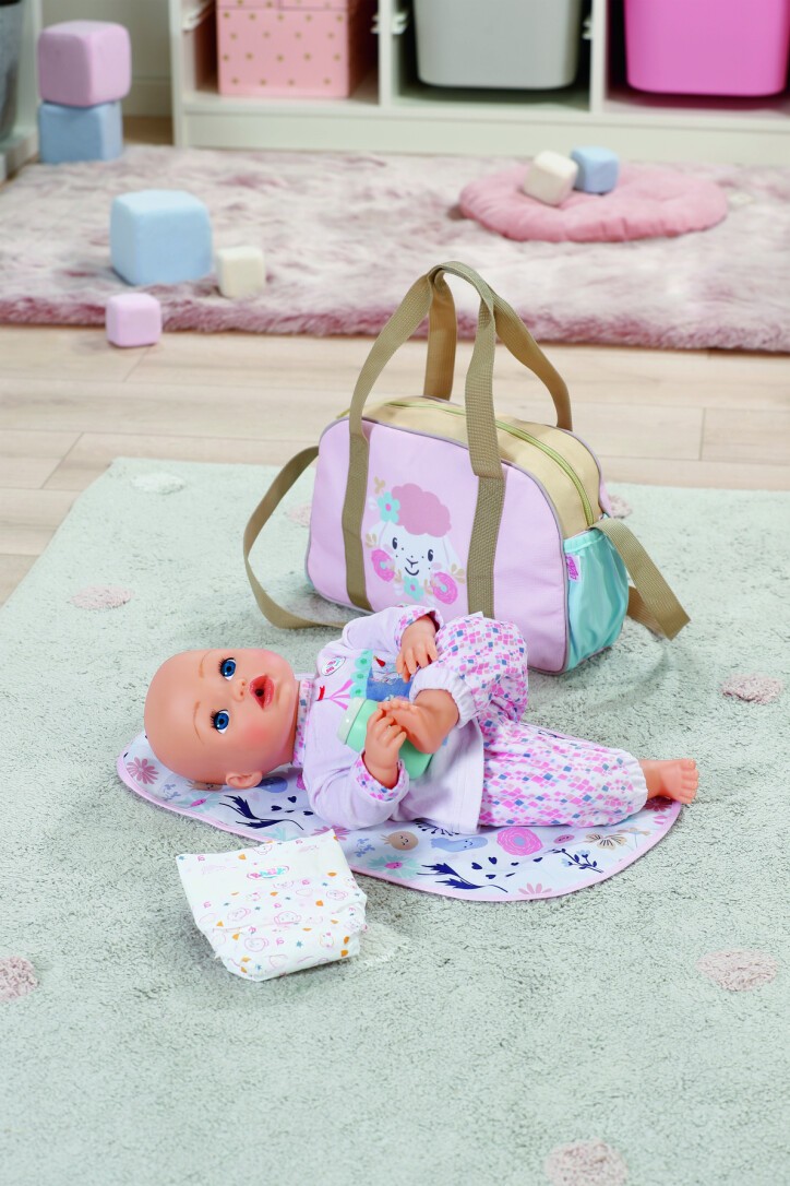 BABY born Wickeltasche, Puppenwickeltasche mit Blumen inkl. Wickelunterlage, Windel und Puderdose