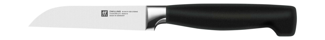 Nie wieder ohne – das Gemüsemesser der VIER STERNE Serie von ZWILLING ist mit einer Klingenlänge von 8 cm und der glatten Wate sowie stabilen Spitze ideal zum Schälen und Schneiden der verschiedensten Obst- und Gemüsesorten. Das SIGMAFORGE Messer ist aus einem Stück präzisionsgeschmiedet und aus Spezialstahl hergestellt. Die FRIODUR Klinge, die einem besonderen Eishärteverfahren unterzogen wurde, macht das Messer besonders korrosionsbeständig und schnitthaltig. Der fugenlose Übergang der Klinge zum Griff sorgt dafür, dass sich nirgendwo Reste absetzen können. Dank des robusten, ergonomischen Kunststoffgriffs ist das Gemüsemesser angenehm in der Hand zu halten und sehr alltagstauglich.
