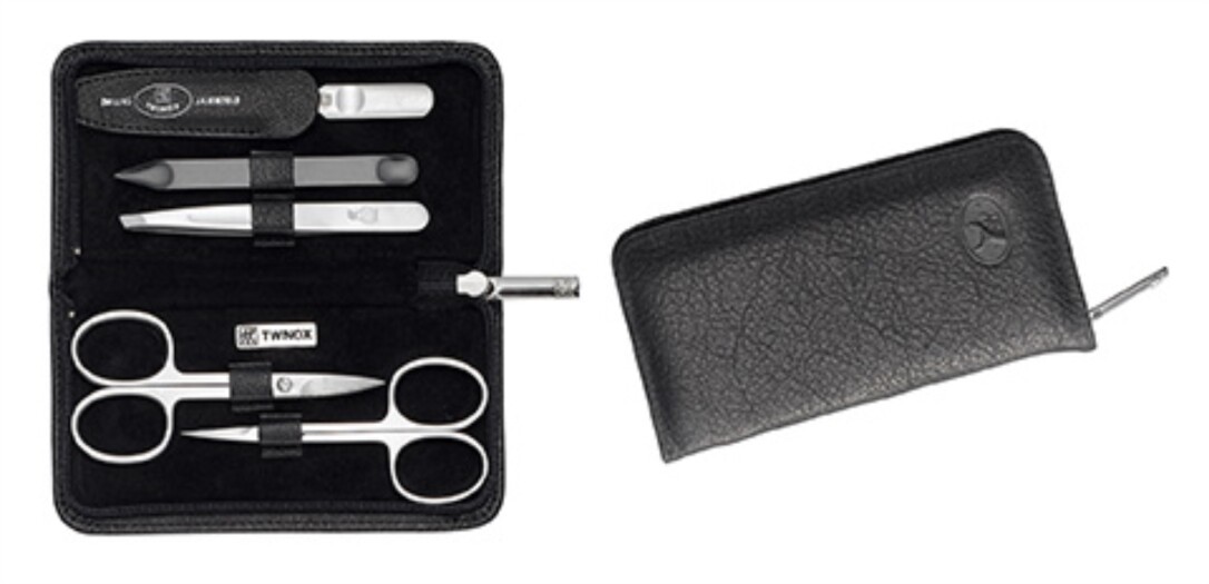 ​Elegant und schlicht in das 5-teilige Maniküre-Set aus der Serie TWINOX. Es enthält all das, was Sie für die Nagelpflege benötigen. In dem Reißverschluss-Etui aus schwarzem Yakleder finden die hochwertigen Instrumente Platz.