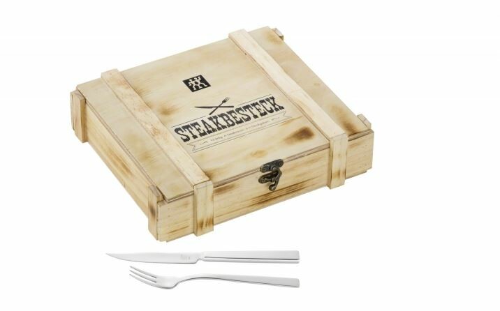 Um bei einem sommerlichen Grillabend mit Freunden das gegrillte Steak auch richtig genießen zu können, darf das passende Steakbesteck natürlich nicht fehlen. Mit dem ZWILLING Steakbesteckset wird jeder Grillabend nun zum echten Südstaaten-Barbecue am Lagerfeuer. Denn schon die rustikale Holzboxverpackung – die sich bestens zur Aufbewahrung des Steakbestecks nutzen lässt – erinnert an den Wilden Westen und macht das Set zu einem Geschenk, dass mit Sicherheit gut ankommt – nicht nur bei Männern.
