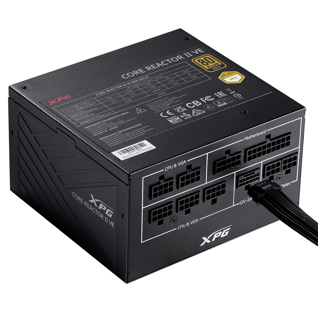 XPG COREREACTOR II VE 850W Netzteil. Gesamtleistung: 850 W, AC Eingangsspannung: 100 - 240 V, AC Eingangsfrequenz: 47 - 63 Hz. Motherboard Anschlussstecker: 24-pin ATX, Stromkabellänge Motherboard: 65 cm, SATA-Netzkabellänge: 150,450 mm. Zweck: PC, Stromversorgungseinheit (PSU) Formfaktor: ATX, 80 Plus Zertifizierung: 80 PLUS Gold. Produktfarbe: Schwarz, Kühlung: Aktiv, Lüfterdurchmesser: 12 cm. Zertifizierung: CB / CE / FCC / TUV / cTUVus / BSMI / CCC NOM / FCC IC / UKCA / TUV / TUV S-Mark / cTUVus