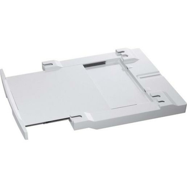 Verbindungssatz zur sicheren und platzsparenden Montage eines Wäschetrockners über einer Waschmaschine. Ausgestattet mit einer ausziehbaren Arbeitsfläche, die eine ergonomische Höhe für komfortables Umladen, Sortieren und Zusammenlegen der Wäsche bietet. Geeignet für Frontlader-Waschmaschinen mit einer Tiefe von 55 bis 67 cm sowie Wäschetrockner mit einer Tiefe von 57 bis 67 cm. Maximale Belastung der Arbeitsfläche beträgt 15 kg. Farbe Weiß, gefertigt aus robusten Materialien für eine stabile und langlebige Nutzung.