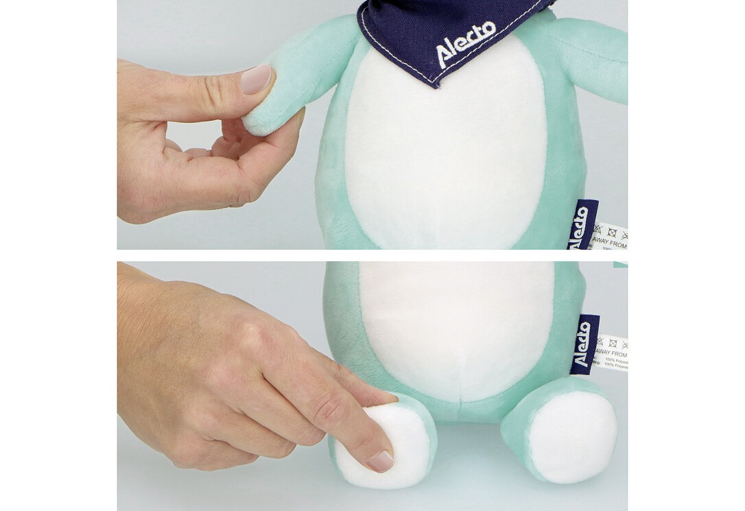 Als Zugabe ist der Alecto BC-350 mit einem Geräuschsensor ausgestattet. Ist dieser Modus und damit der Geräuschsensor eingeschaltet, spielt das Kuscheltier sobald es ein Geräusch erkennt automatisch 15 Minuten lang Schlaflieder oder Töne ab, die Ihr Kind ganz von alleine wieder einschlafen lassen. Ganz ohne Hilfe von Mama oder Papa. Danach bleibt der Sensor noch 3 Stunden lang aktiv, ehe er sich vollständig abschaltet.