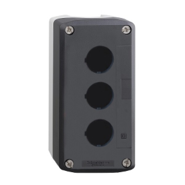 dark grey empty enclosure lid with light grey base - 3 cut-outs