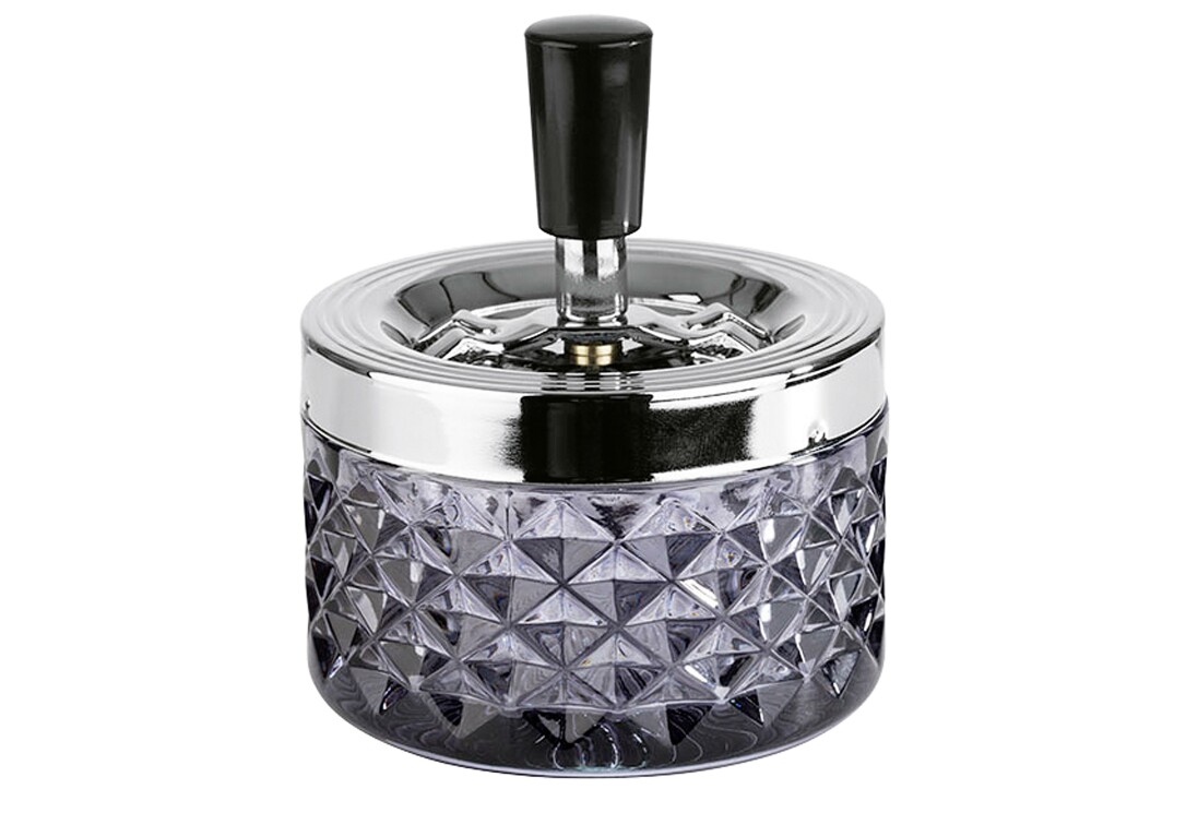 Glas, glänzend, Metall verchromt. Deckel mit Drehmechanismus und mit Bajonettverschluss .
