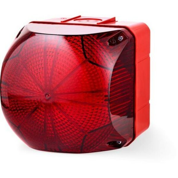 LED Dauer-/Blinkleuchte in quadratischem Design, Grösse 1, Gehäuse rot, moderne LED Technik, lange Lebensdauer, niedriger Stromverbrauch, vibrationssicher, für verschiedenste optische Signalisierungsanforderungen, einzigartiges Kalottendesign, vielfältige Installations- und Montagemöglichkeiten, Kombinationsmöglichkeit mit Schallgebern Serie A