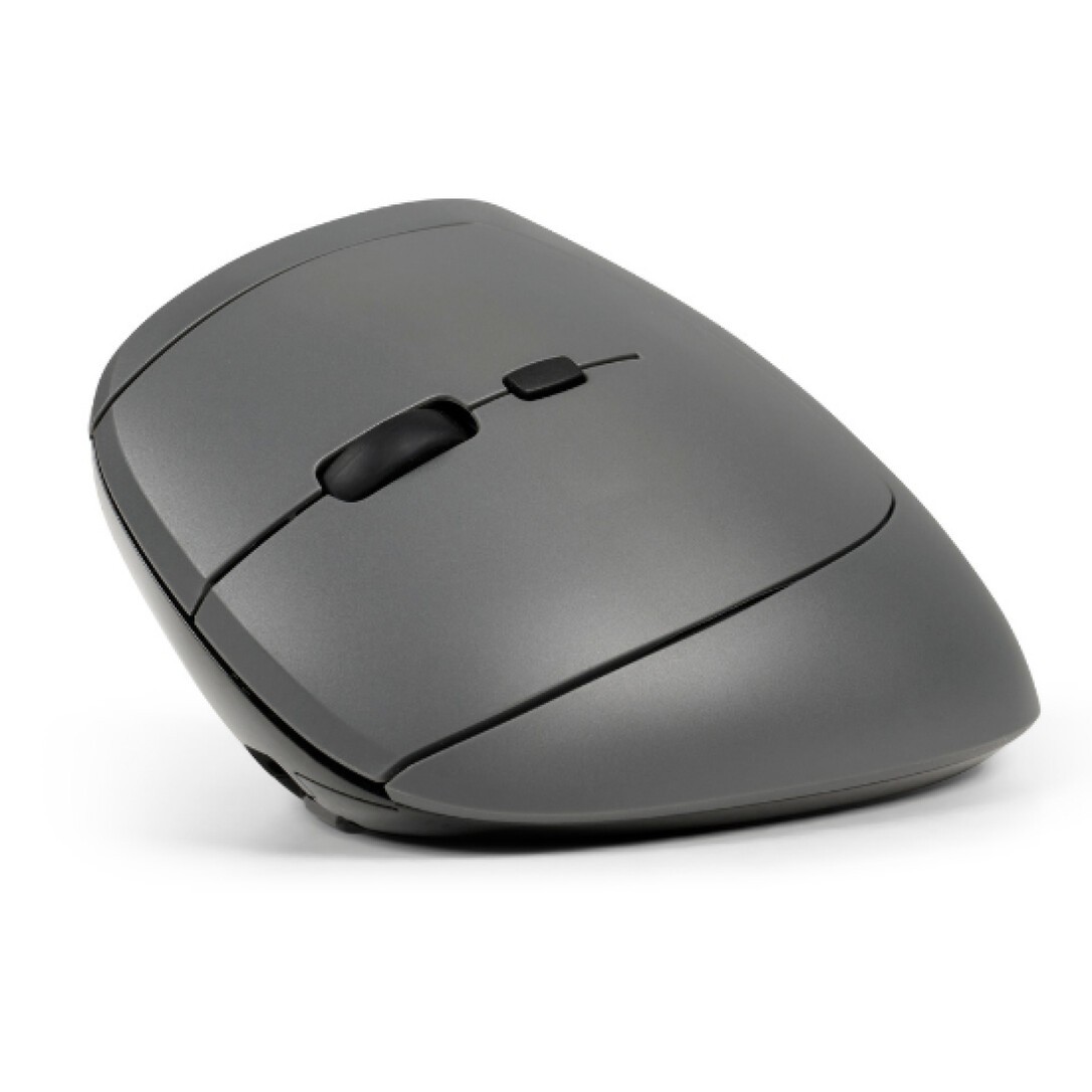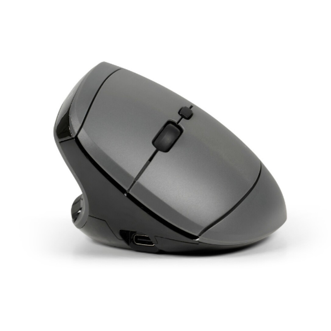 BakkerElkhuizen MidWay mouse Left, Linkshändig, Vertikale Ausführung, Optisch, RF Wireless + Bluetooth + USB Type-C, 2400 DPI, Grau, Schwarz