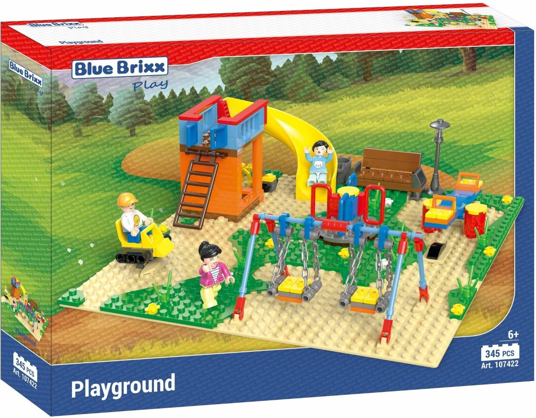 BUNTER SPIELPLATZ MIT VIELEN SPIELMÖGLICHKEITEN: Baue einen fröhlichen Spielplatz mit Schaukel, Rutsche,Wippe und weiteren Spielgeräten, die zum kreativen Spielen einladen. ABWECHSLUNGSREICHE SPIELGERÄTE FÜRENDLOSEN SPIELSPAß: Die vielfältigen Spielmöglichkeiten bieten Kindern die Möglichkeit, eigene Abenteuerzu erfinden, Alltagsszenen nachzuspielen und ihre Fantasie voll auszuleben. PERFEKT KOMBINIERBAR MIT BLUEBRIXXPLAY 107857 – KINDERGARTEN MIT SPIELPLATZ: Erweitere deinen Kindergarten um zusätzliche Spielmöglichkeiten und schaffe eine noch größere, lebendigere Spiellandschaft. IDEAL FÜR KREATIVE ROLLENSPIELE UND STADTBAUPROJEKTE: Das Set eignet sich hervorragend, um realistische Stadtszenen zu gestalten und kinderfreundliche Bereiche zu integrieren. FÖRDERT KREATIVITÄT UND FEINMOTORIK: Beim Zusammenbauen und Bespielenwerden logisches Denken, motorische Fähigkeiten und das Verständnis für Spielplatzwelten spielerisch geschult. 345 BAUELEMENTE FÜR EIN DETAILREICHES UND STABILES MODELL: Die robuste Konstruktion sorgt für eine langlebige Spielwelt, die immer wieder neu gestaltet werden kann. 100 % KOMPATIBEL MIT STANDARD-KLEMMBAUSTEINEN ANDERER HERSTELLER: DasSet lässt sich perfekt mit weiteren Klemmbausteinsets kombinieren, umeine noch größere Stadtwelt zu erschaffen.