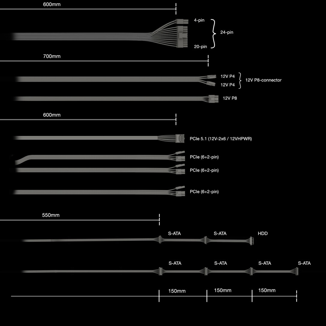 be quiet! POWER ZONE 2 750W. Gesamtleistung: 750 W, AC Eingangsspannung: 100 - 240 V, Spitzenstrom: 820 W. Motherboard Anschlussstecker: 20+4 pin ATX, Stromkabellänge Motherboard: 60 cm, SATA-Netzkabellänge: 550,700,850,1000 mm. Zweck: PC, Stromversorgungseinheit (PSU) Formfaktor: ATX, 80 Plus Zertifizierung: 80 PLUS Platinum. Produktfarbe: Schwarz, Kühlung: Aktiv, Lüfterdurchmesser: 14 cm. Konformitätsbescheinigungen: BSMI, CB, CCC, CE, Eidgenössische Kommunikationskommission (FCC), RCM, RoHS, TÜV mark, UKCA, WEEE