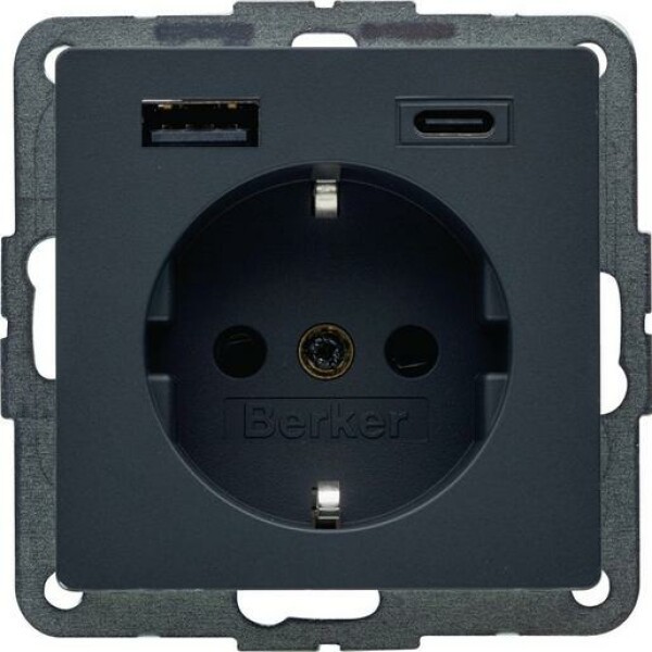 Berker Q.X SSD 1X USB A/1X USB C ANTH (48146086 AC20W PD 3A)