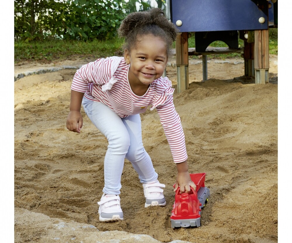 Dank der nicht abfärbenden Reifen spielt Ihr Kind im Kinderzimmer oder auf dem Spielplatz, im Garten oder unterwegs. Extra langlebig: Das Spielzeug ist aus UV-beständigem Material gefertigt, dadurch langlebig und leicht zu reinigen. So können Kinder mit viel Spaß im Sandkasten und Matsch spielen.
