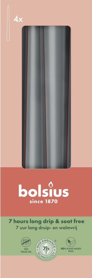 BOLSIUS Spitzkerze 24,5x2,4cm stürmisches grau 4Stück