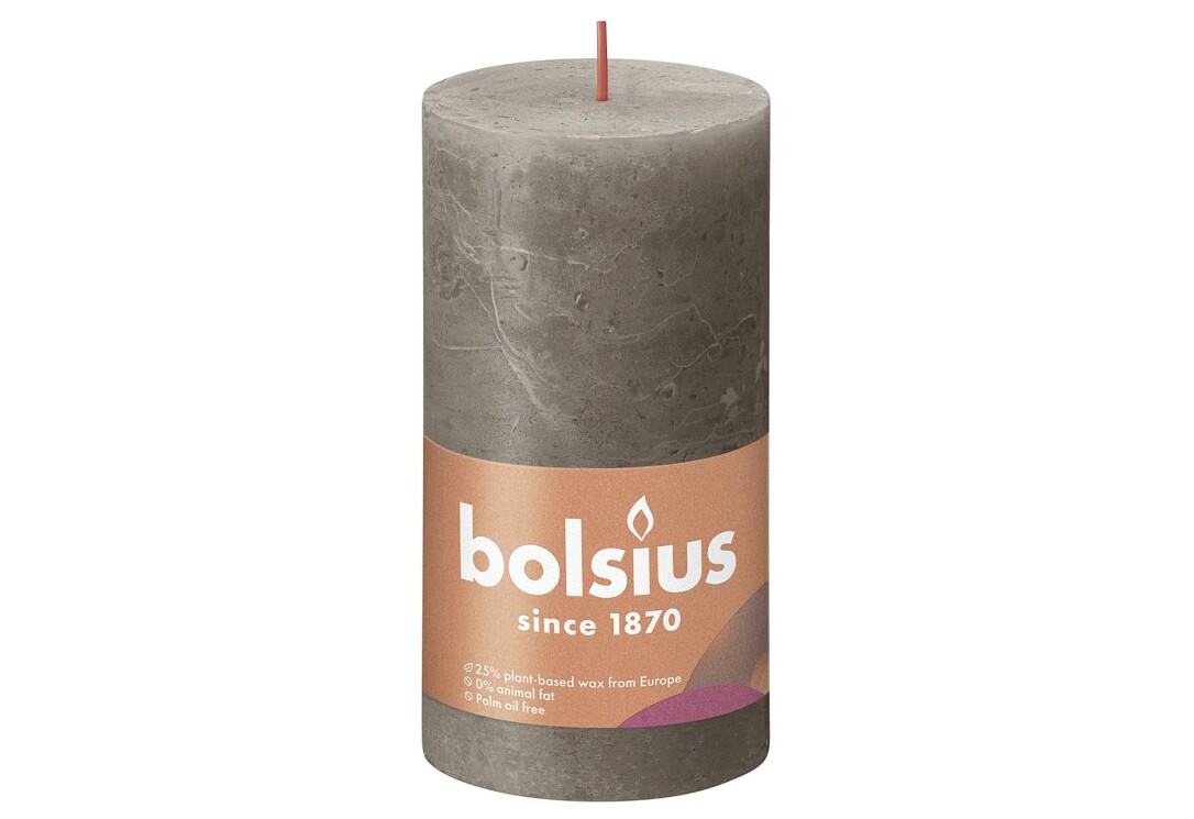 aus 25 % pflanzlichem Wachs aus Europa, frei von Palmöl und tierischen Fetten, einem Docht aus fair gehandelter Baumwolle, durchgefärbt, rustikales Taupe, Ø 7 cm, H 13 cm, Brenndauer ca. 60 Stunden (die Brenndauer ist nur bei bestmöglichen Verhältnissen gewährleistet)