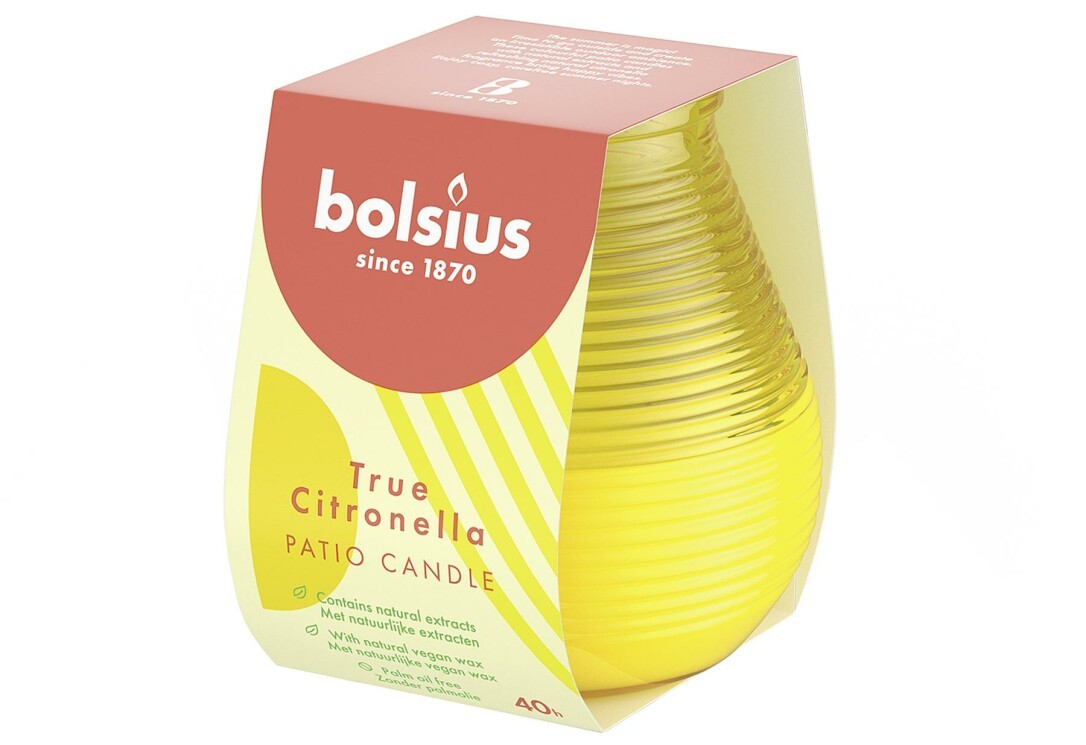 True Citronella Patiolicht - Genieße stylische und sorgenfreie Sommerabende im Freien! Die Bolsius Citronella Outdoor Kerzen mit natürlichen Extrakten haben einen wunderbar frischen Duft. Mit Rücksicht auf Mensch und die Umwelt, mit leuchtenden Farben, um deinem Garten oder Balkon mehr Glanz zu verleihen. Mit natürlichen Extrakten | Mit veganem Wachs | Ohne Palmöl. Duft: Citronella. Brenndauer: 40 Stunden. Farbe: gelb. Ø 9,1 cm, H 9,4 cm.