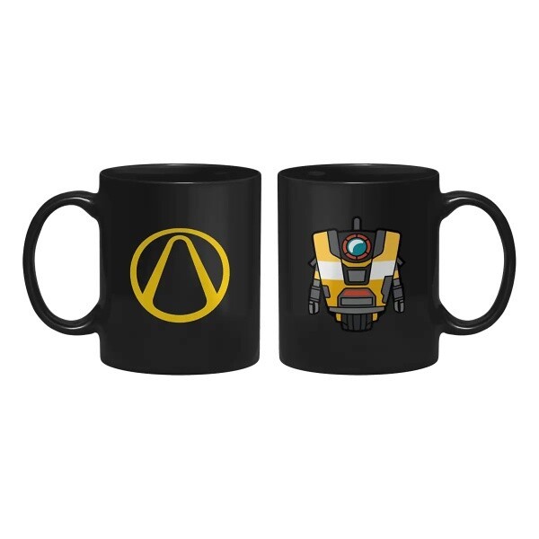Der Keramikbecher zeigt auf der einen Seite Claptrap, den beliebten Roboter aus Borderlands, und auf der anderen das kultige Vault-Symbol. Dieser Becher ist mikrowellen- und spülmaschinenfest.