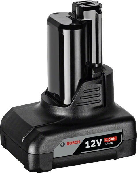 Bosch GBA 12V 6.0AH. Product type: Battery, Battery technology: Lithium-Ion (Li-Ion), Battery capacity: 6 Ah. Battery width: 5.3 cm, Battery depth: 8.4 cm, Battery height: 10.7 cm